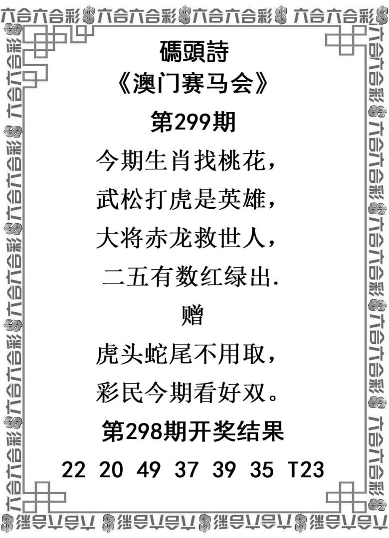 | 299期:王者高手【一肖二码】精彩爆料 |